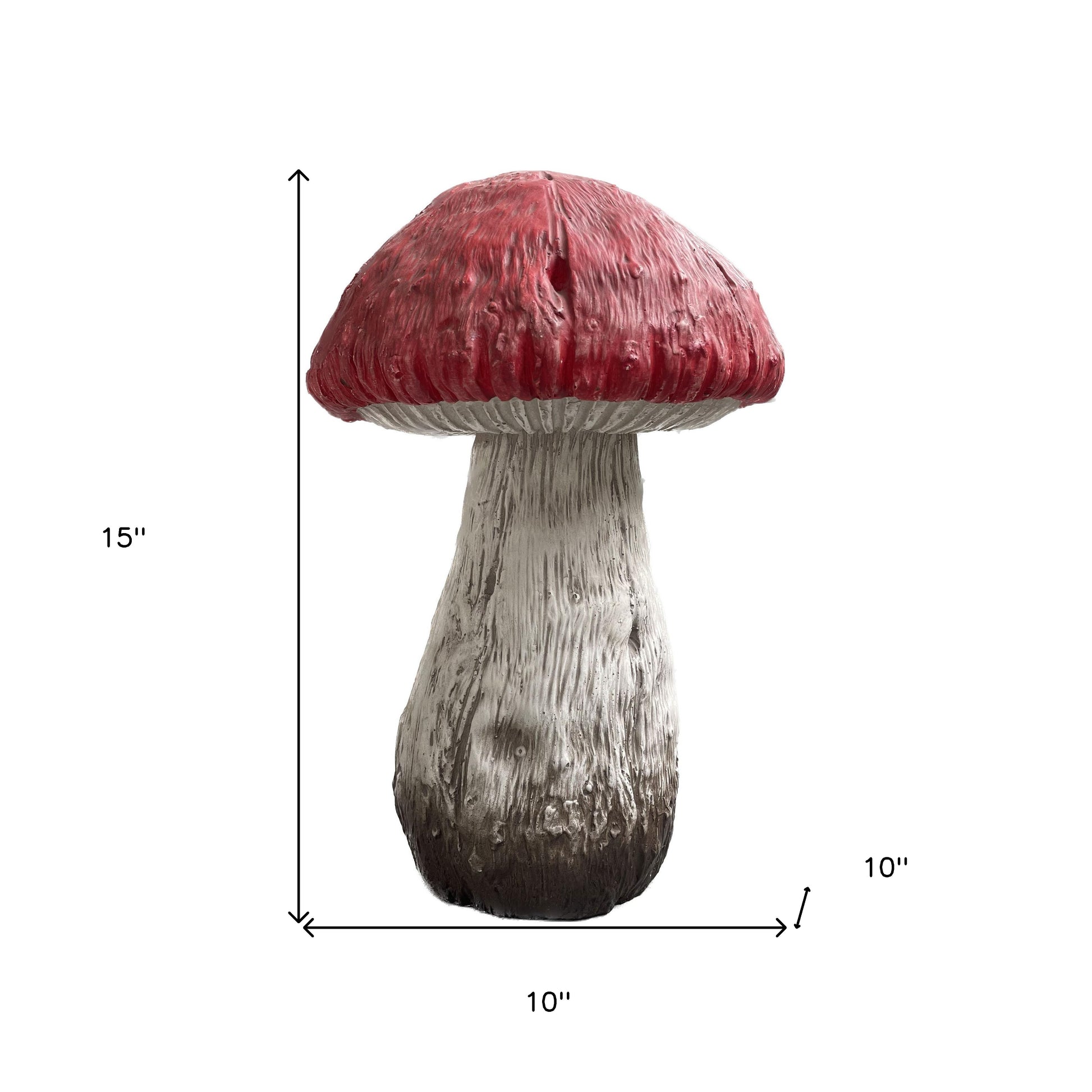 15" Red And White Polyresin Mushroom Outdoor Statue