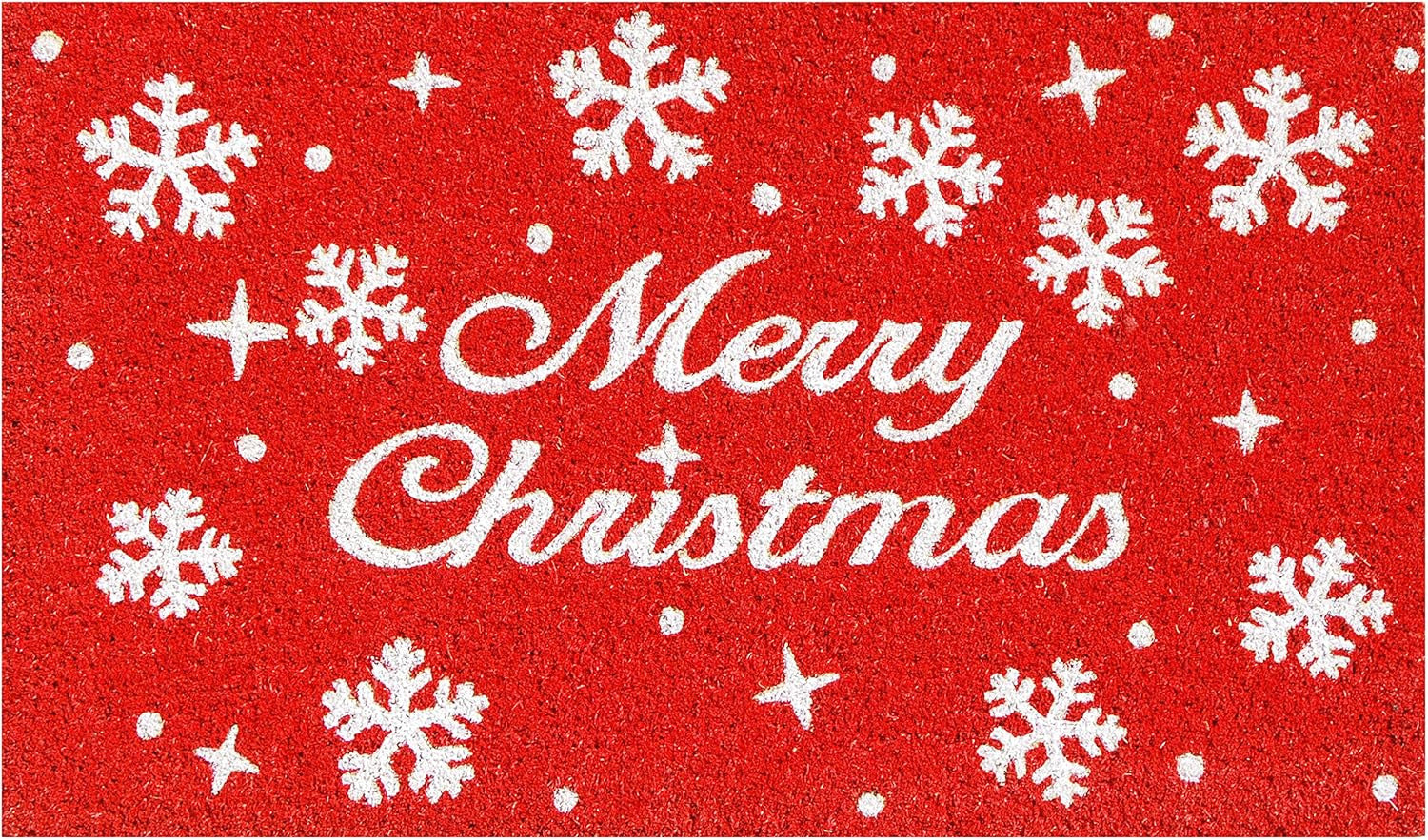 Known for it's extreme durability and ability to withstand heavy foot traffic, this 17-inch x 29-inch red and white coir Merry Christmas outdoor door mat is an ideal option for the front door or entrance way of your home or business. Crafted from coconut husks, this mat is not only functional but is an an eco-friendly and visually appealing accessory. The naturally bristled texture of coir is an efficient way to clean dirt and mud from shoes and is easy to clean and maintain. Add this festive and decorative holiday mat to create a practical yet inviting welcome to all who enter. 17-inch h x 29-inch w x 0.6-inch d.