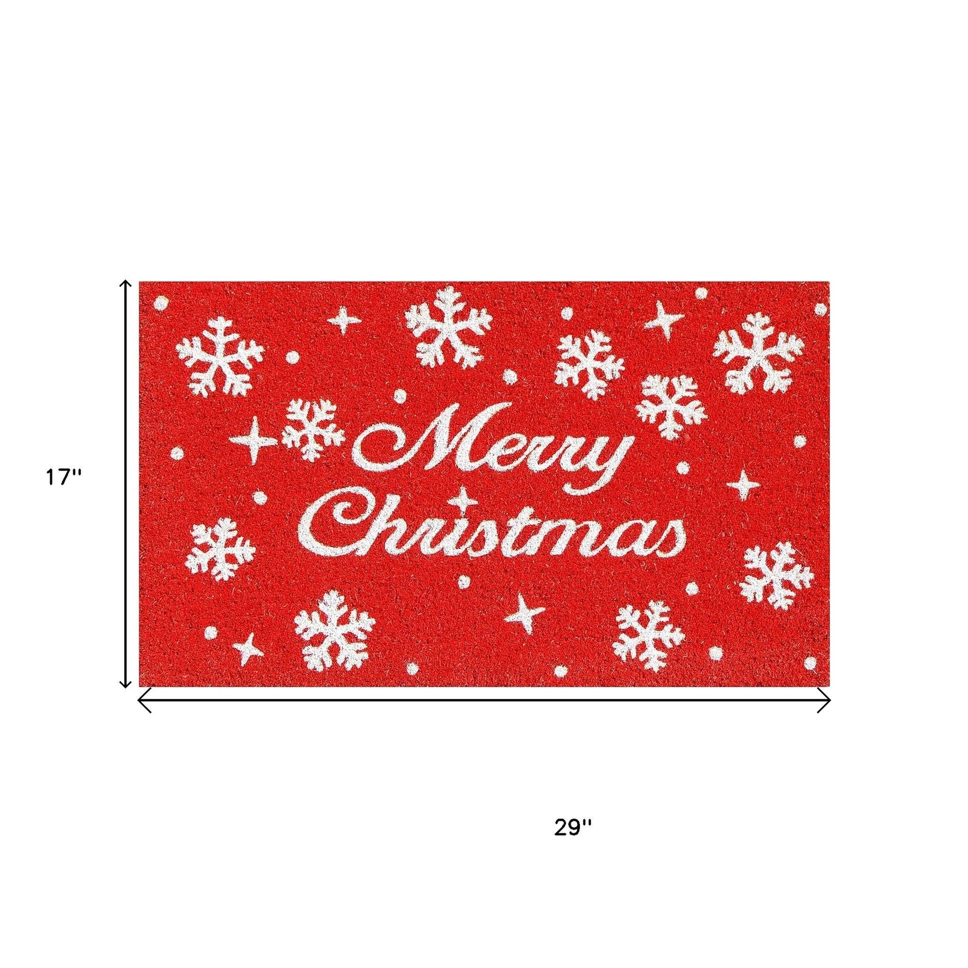 17" X 29" Red And White Coir Merry Christmas Outdoor Door Mat