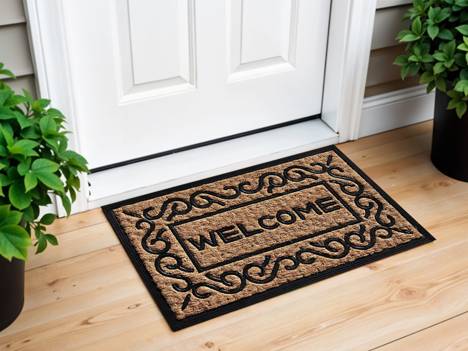 18" X 30" Natural And Black Coir Welcome Outdoor Door Mat