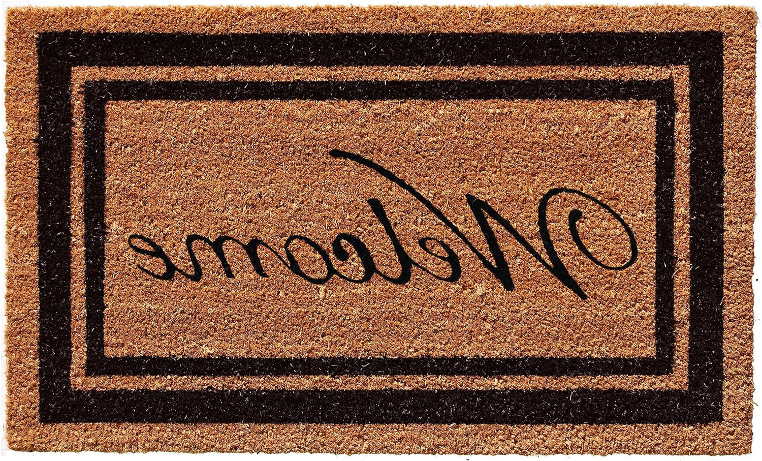 18" X 30" Natural And Black Striped Border Welcome Outdoor Coir Door Mat