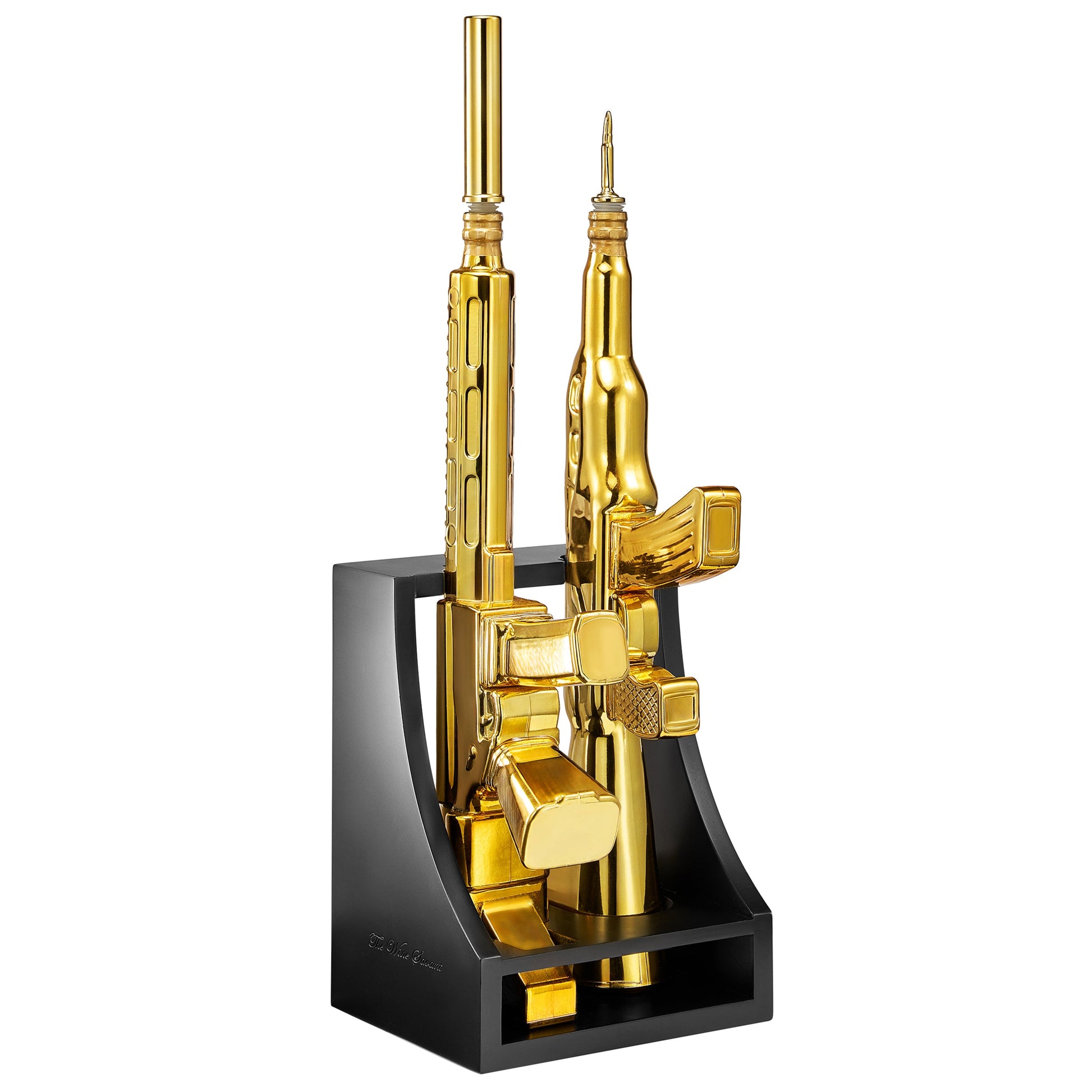 - UNIQUE AND STRIKING DESIGN: The 2 Gun Gold Whiskey Decanters Set & Rifle Gun Decanter is a bold addition to any home bar. Featuring two beautifully crafted decanters in the shape of an AK and an AR15 rifle, this set brings an impressive and unique aesthetic to your drinkware collection. Each piece has a gold finish, giving it a refined yet edgy look that stands out, perfect for gun enthusiasts and those who appreciate distinctive bar accessories.