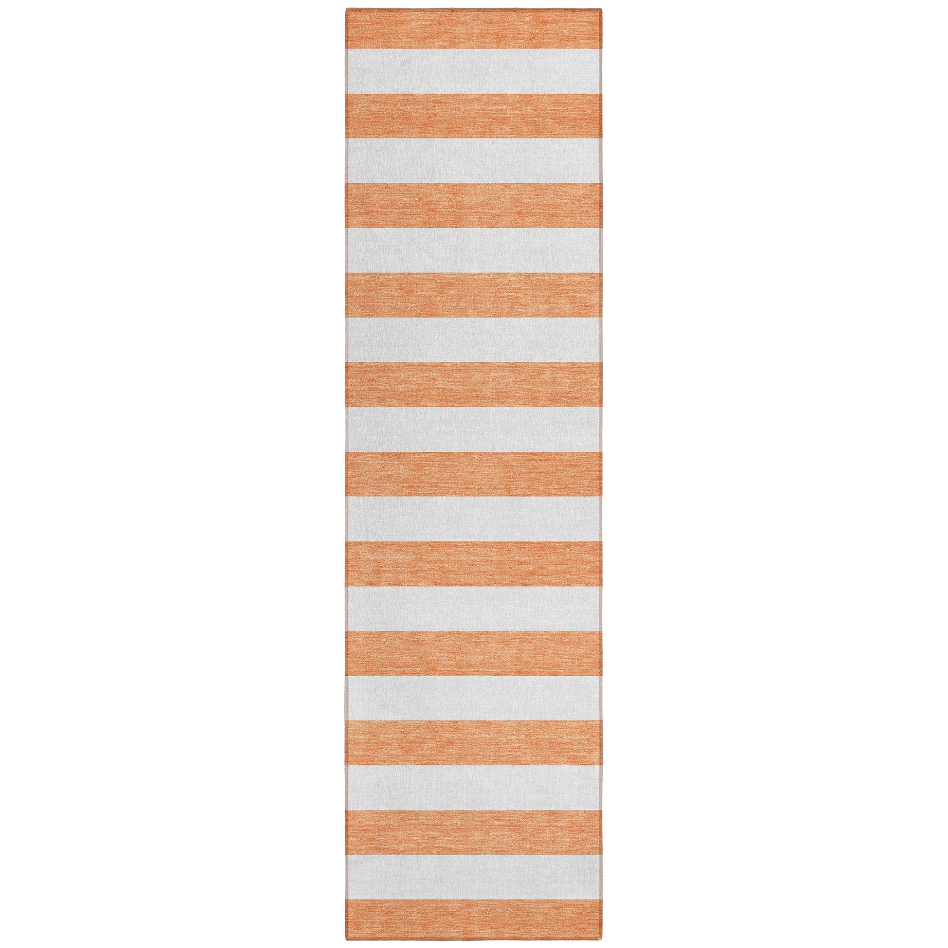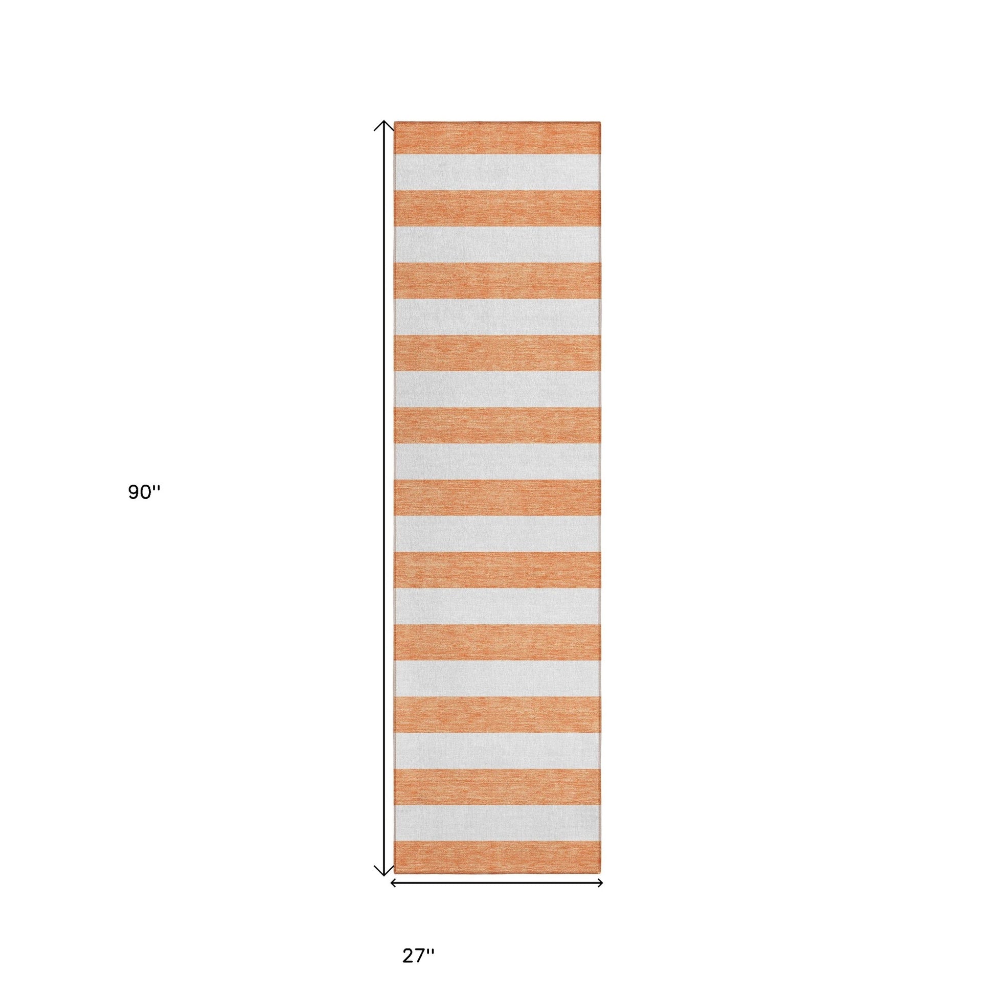 2' X 8' Salmon Striped Washable Indoor Outdoor Runner Rug