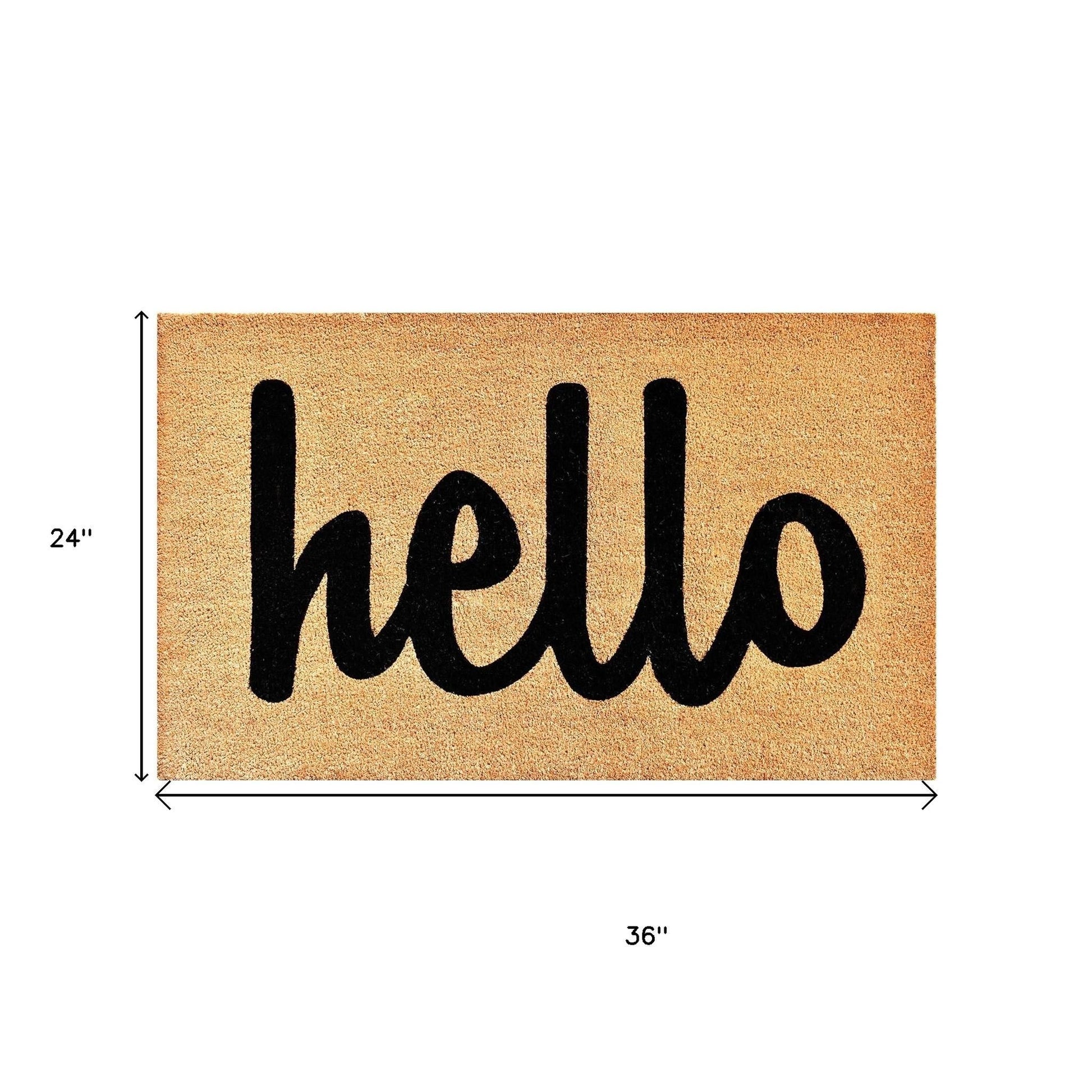 24" X 36" Natural And Black Bold Hello Outdoor Coir Door Mat