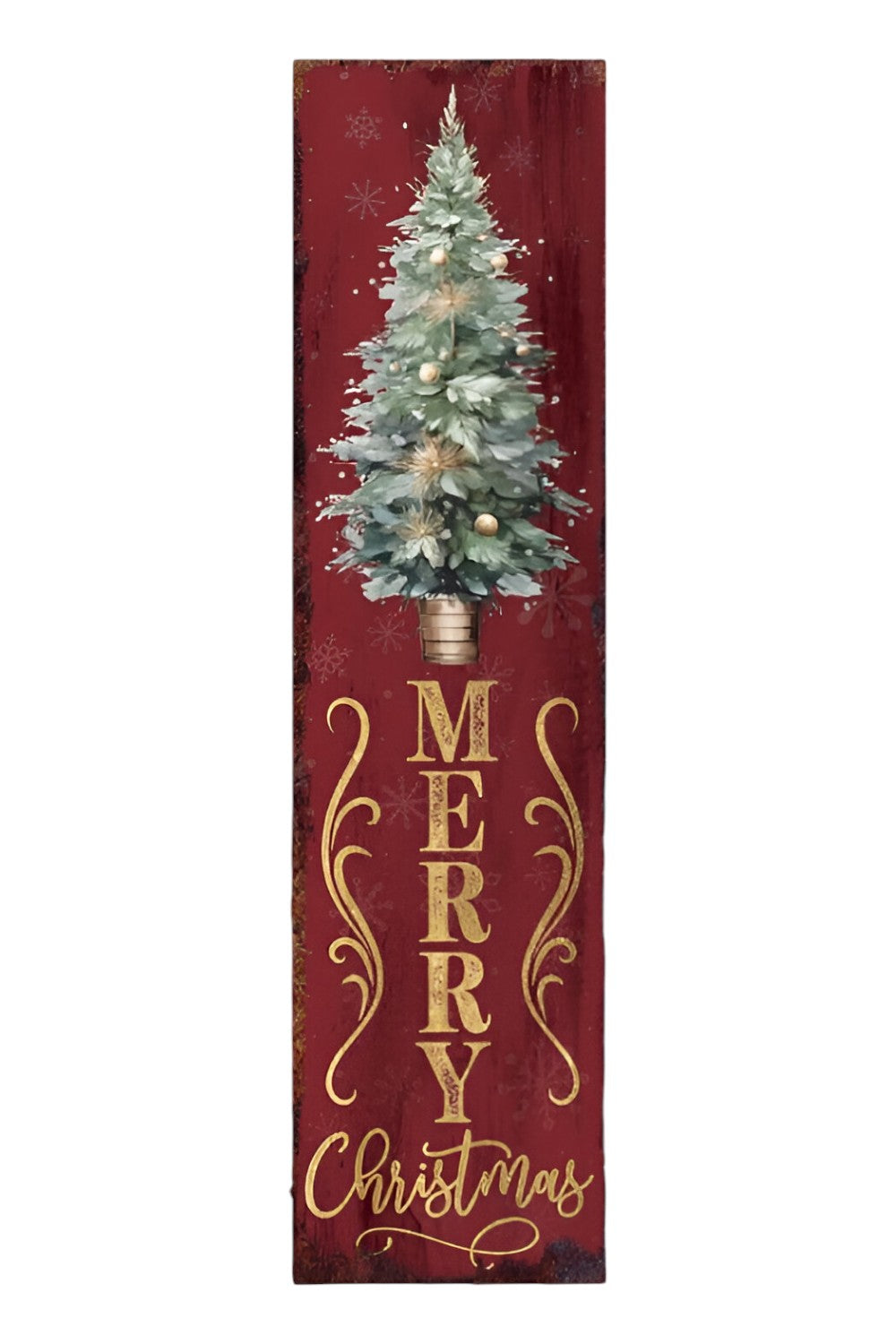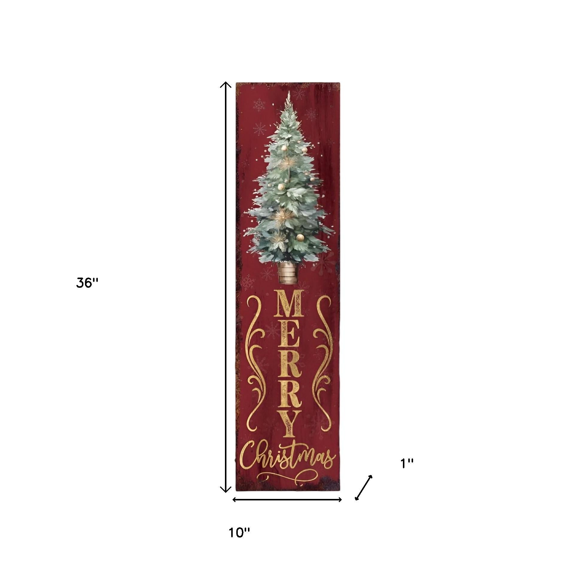 36" Red and Green Merry Christmas Christmas Tree Solid Wood Porch Sign
