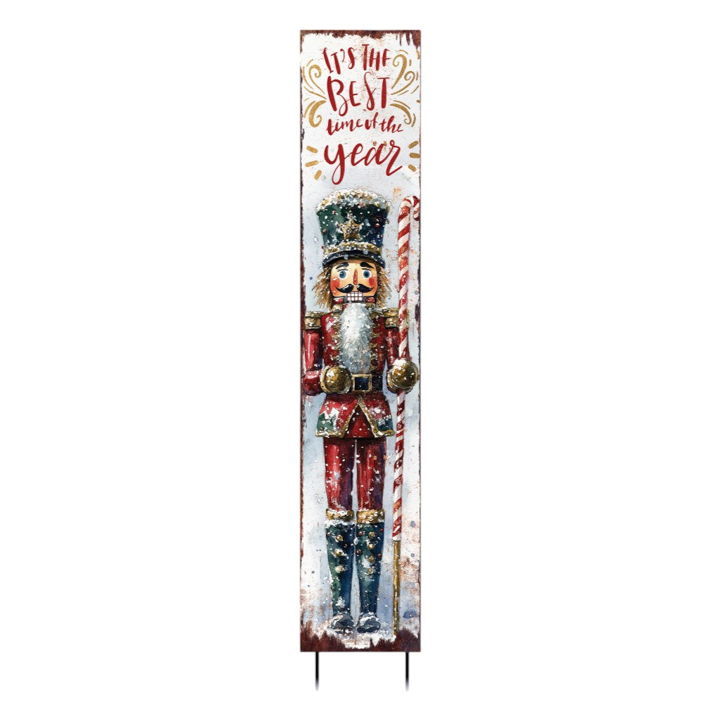 42" Red And White Solid Wood Best Time of Year Christmas Nutcracker Garden Stake