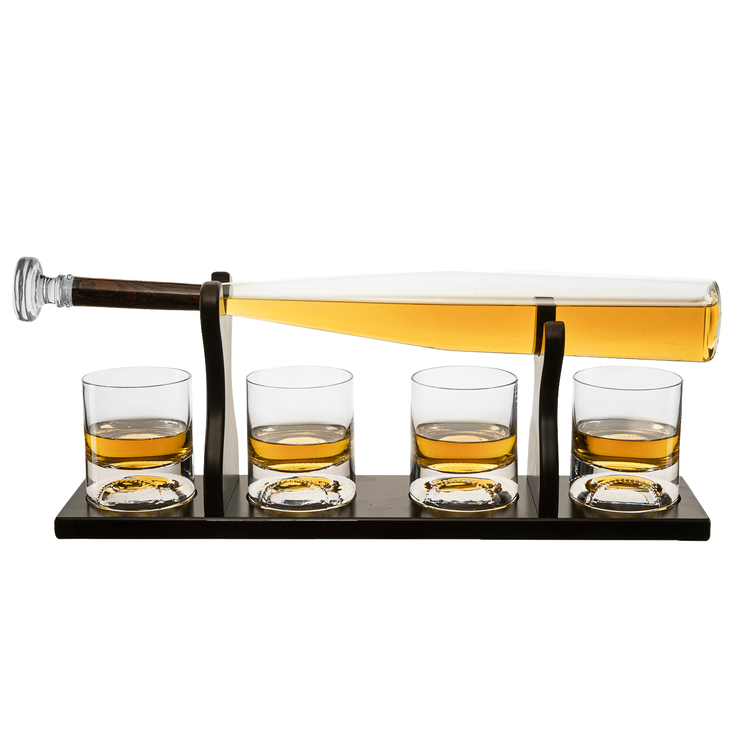 - LIMITED EDITION BASEBALL SET - WITH A BEAUTIFUL MAHOGANY BAT SHAPED HOLDER: This is a limited Edition Large Baseball Decanter Bat and 4 Baseball Whiskey Glasses. The bat and glasses have many intricate parts and is exceptionally unique in design. Baseball Glass. Copyright 2019 Mark Sanders LLC.