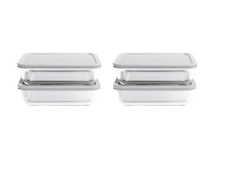 Glass Food Storage Containers - 8 Piece 6.55 Cup (4 Containers + 4 Lids) Rectangular Set