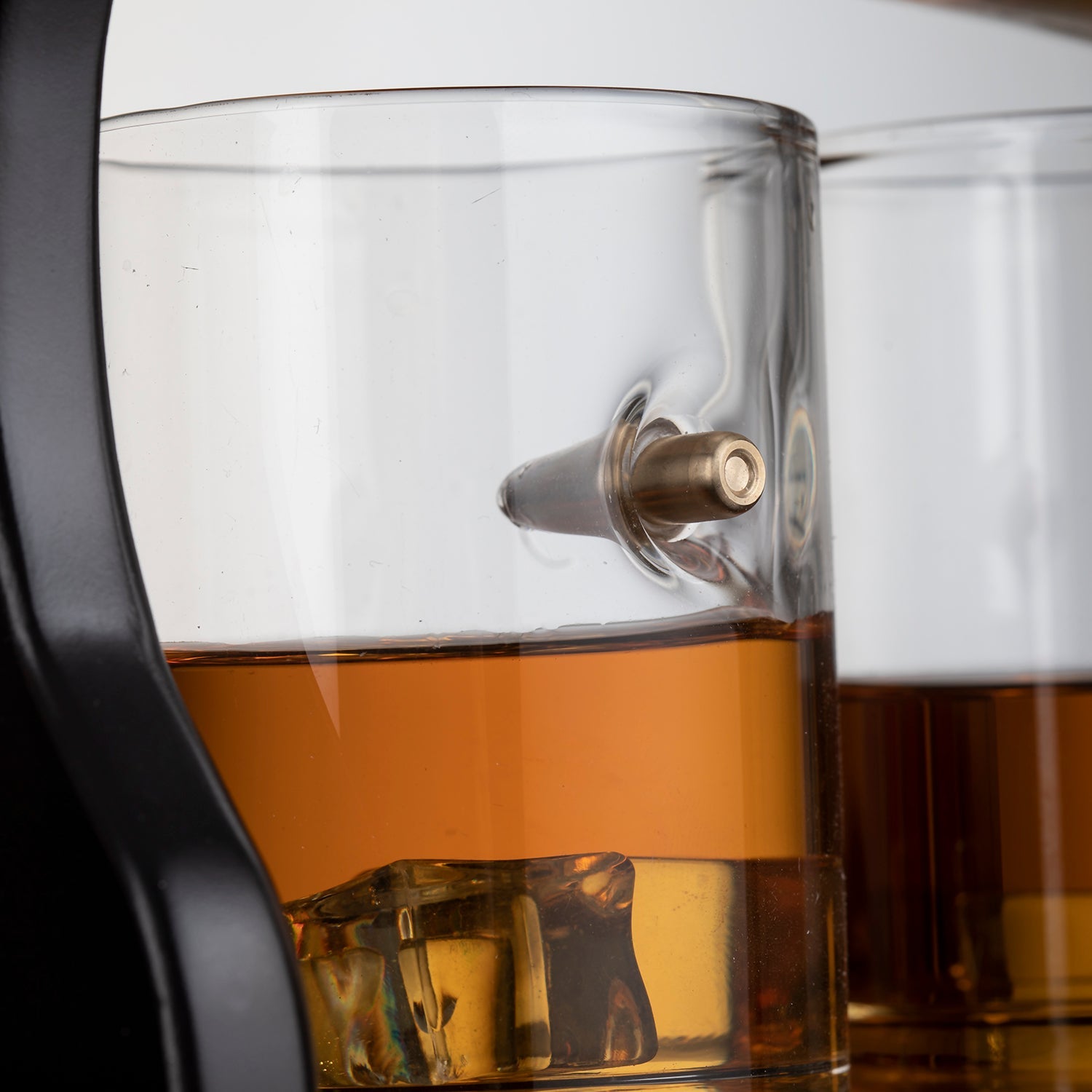 - PROFESSIONAL QUALITY BULLET WHISKEY GLASSES AND CLASSIC LOOK: Four Handcrafted 12 oz Whiskey Glasses and the Decanter is 100ml. Because only the finest materials are used to make these glasses, please hand-wash only.