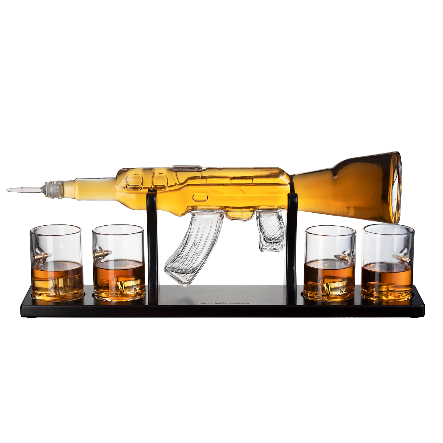 - CLASSIC WHISKEY DECANTER: This boroscilicate glass gun is more delicate yet less destructive than a traditional gun, it is nonetheless an elegantly decorative item to display in your home or bar. The gun is completely hollow, allowing you to use it as an interesting decanter and fill it up with your favorite vintage of Whiskey, Wine, Scotch or Bourbon.