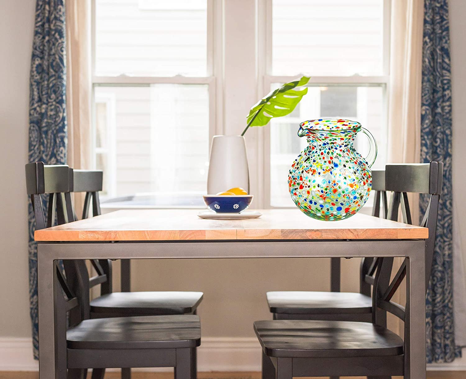 Hand Blown Mexican Glass Pitcher – Confetti Rock Design 70 Ounces - Colorful Beverage Pitcher for Homemade Juice & Iced Tea Cinco De Mayo by The Wine Savant, Blown Glass Pitcher