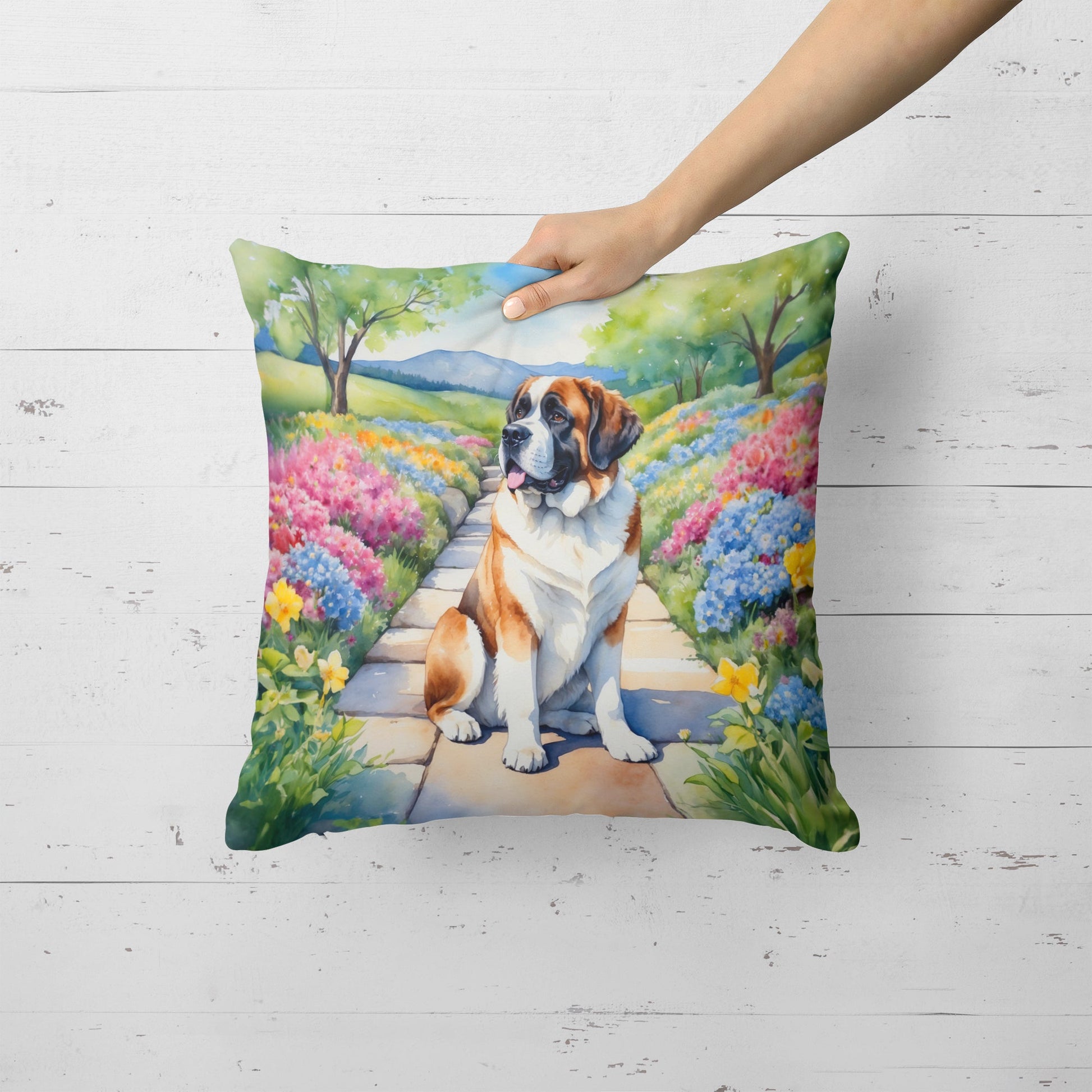 Saint Bernard Spring Path Throw Pillow