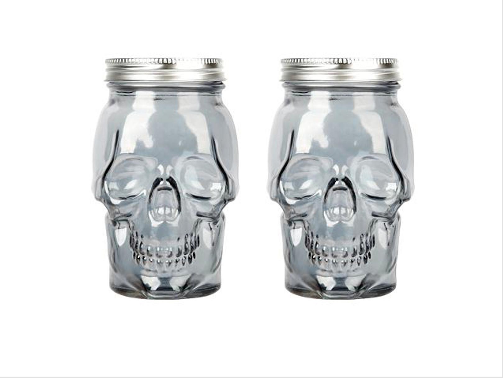 Skull Mason Jar with Lid, 4-Piece Set (2 skull Mason Jars & 2 Lids) 16oz, Smoke