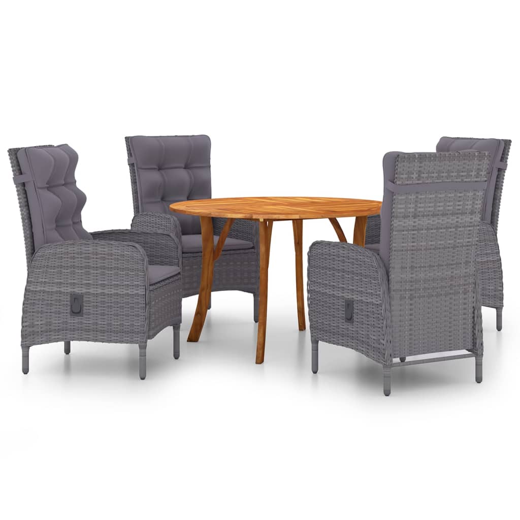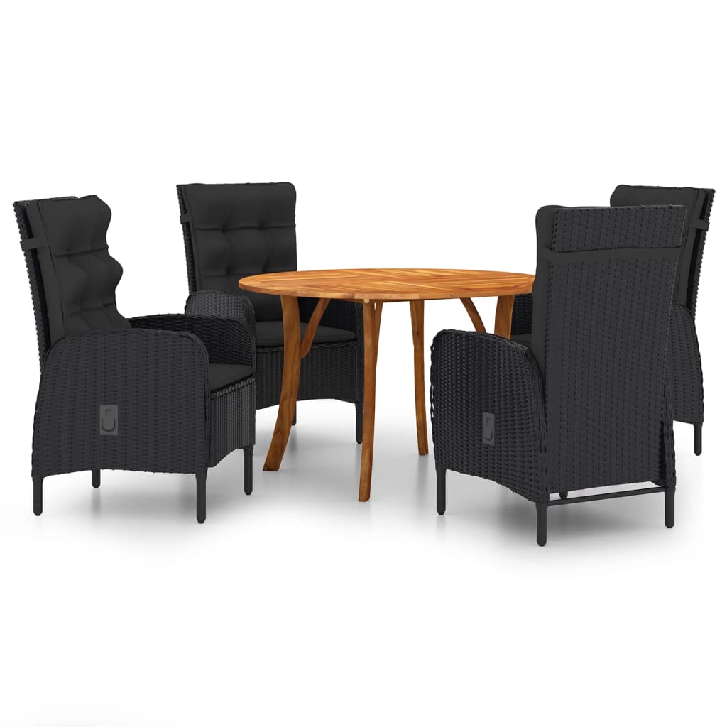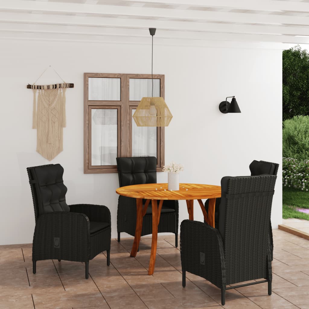 This outdoor table is made of solid acacia wood, making it sturdy and stable. The oil-finished surface also makes the table easy to clean with a damp cloth. Additionally, the curved legs contribute to its stylish design. Featuring a steel frame covered with weather-resistant PE rattan, these dining chairs are sturdy and easy to clean. Each seat comes with thickly padded cushions for adding comfort in your lounging time.